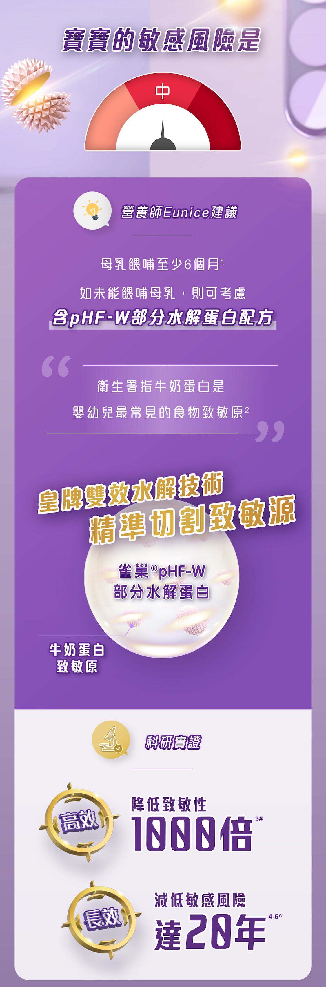 * 與牛奶蛋白對照組比較,高敏感風險寶寶