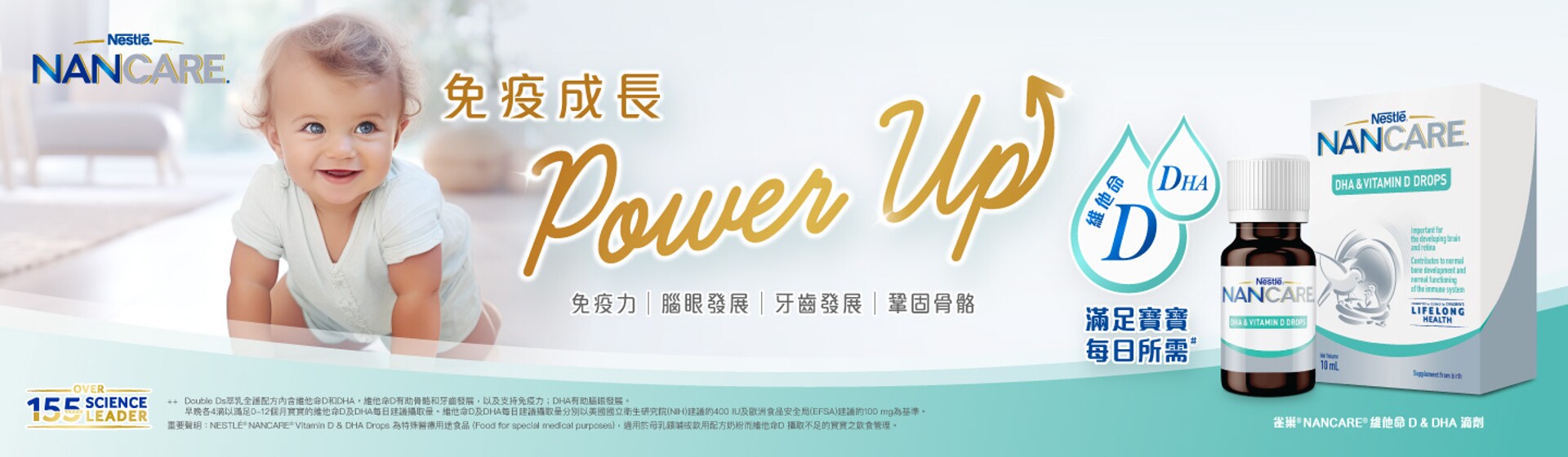 雀巢運用155年內不斷累積的嬰幼兒營養知識及科研經驗,為大家帶來雀巢®NANCARE®維他命D & DHA滴劑,極緻母乳呵護! 配方蘊含Double Ds 萃乳全護配方++,除可支持寶寶維他命D攝取,更特別因應寶寶所需,提升DHA含量,滿足寶寶每日維他命D及DHA所需#,多方面守護寶寶成長,與媽媽一起邁向全營母乳之路!